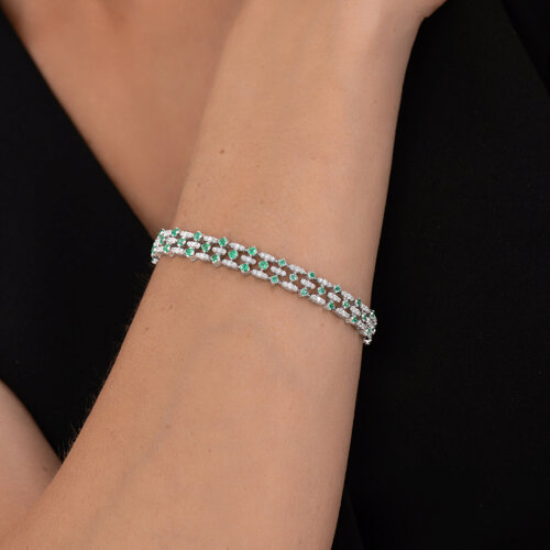 Браслет из белого золота с бриллиантами и изумрудами SOKOLOV 3050051-3