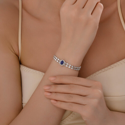 Браслет из белого золота с бриллиантами и сапфиром SOKOLOV 2050084-3