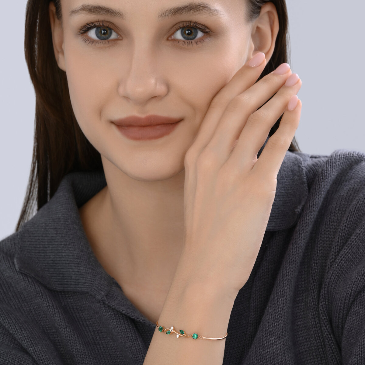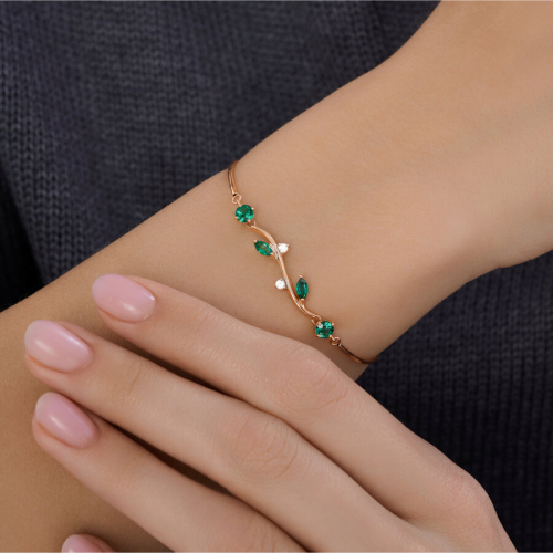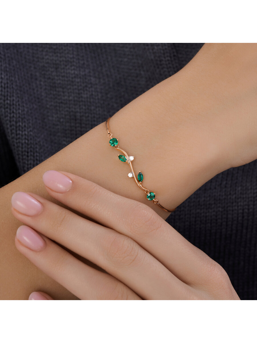 Браслет золотой пробы 585 с изумрудом гидротермальным SOKOLOV 750639