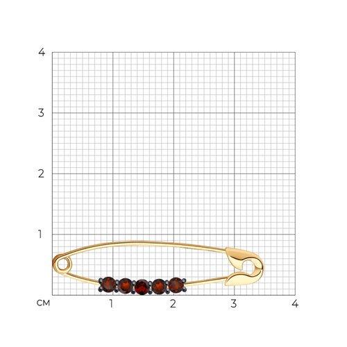 Брошь булавка золотая пробы 585 с гранатом Diamant 51-340-01851-2