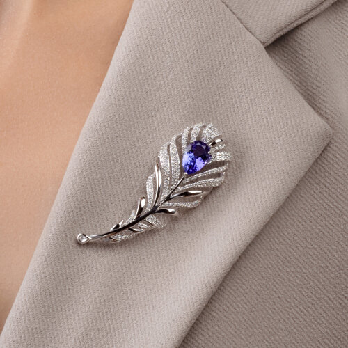 Брошь из белого золота с бриллиантами и танзанитом SOKOLOV 6042009-3