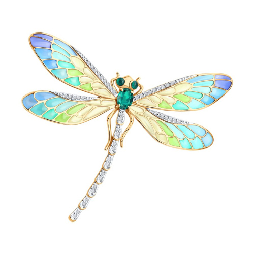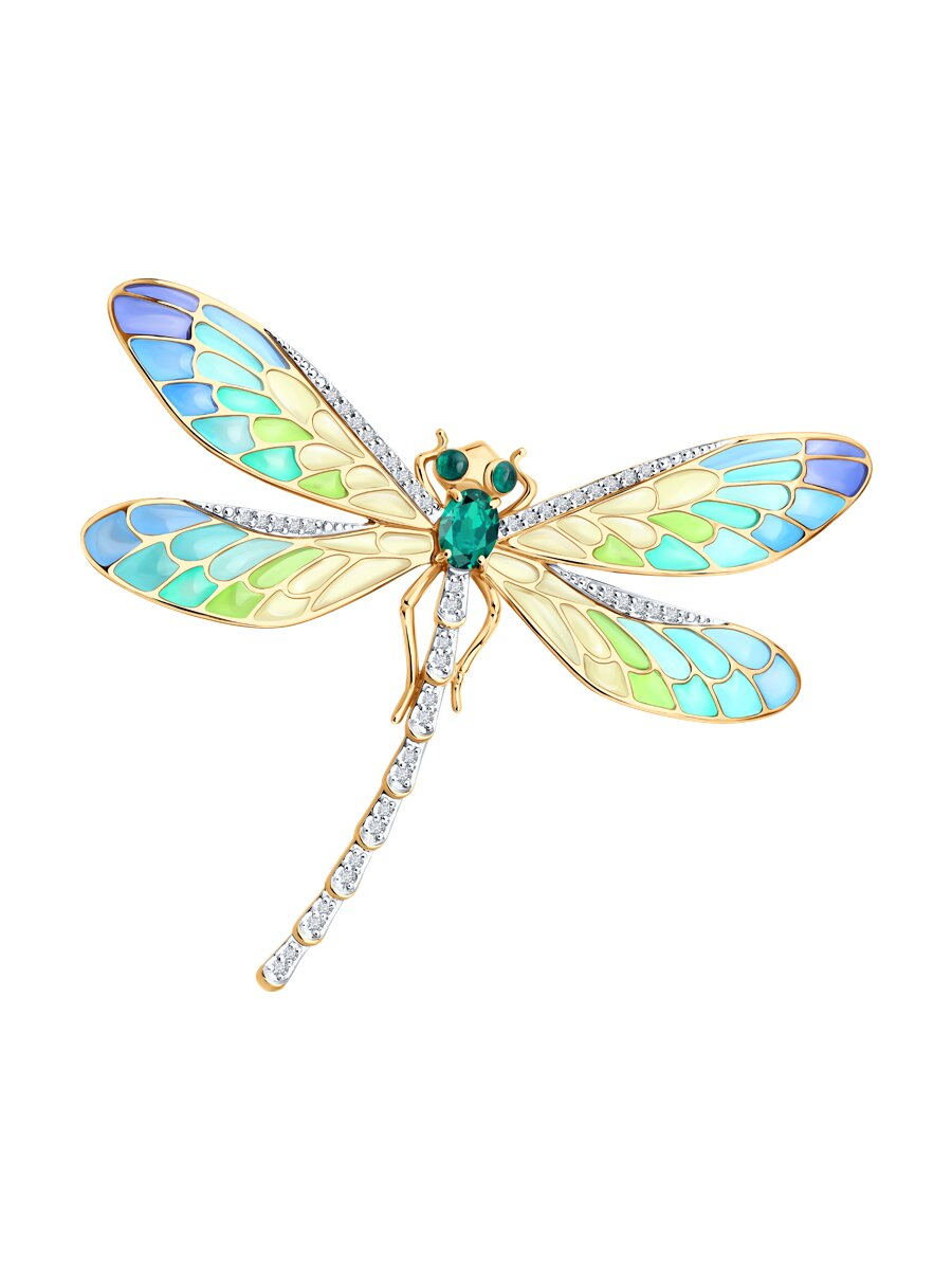 Брошь из золота с бриллиантами, изумрудом и эмалью SOKOLOV 6049034