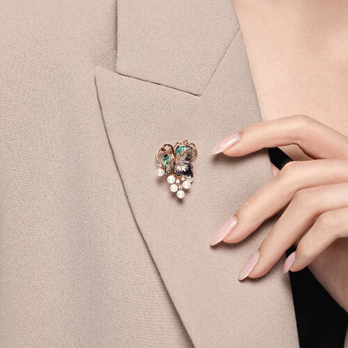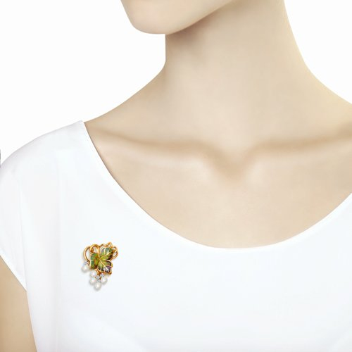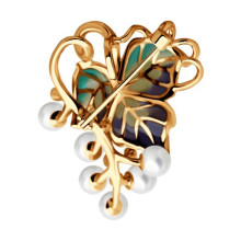 Брошь из золота с эмалью с бриллиантами и жемчугом SOKOLOV 6049007