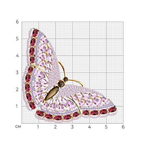 Брошь золотая пробы 585 с миксом камней SOKOLOV 740152