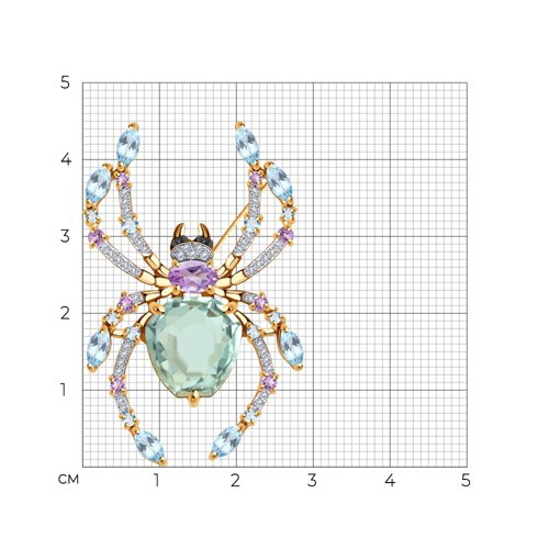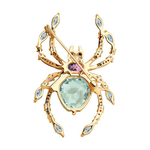 Брошь золотая пробы 585 с миксом камней SOKOLOV 740359