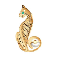 Брошь золотая пробы 585 с жемчугом SOKOLOV 794011