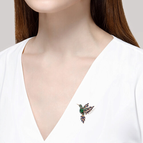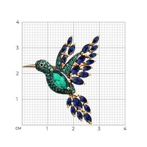 Брошь золотая пробы 585 с миксом камней SOKOLOV 740242