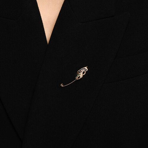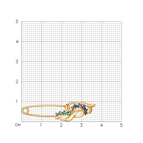Брошь из золота с зелеными и синими фианитами SOKOLOV 040205