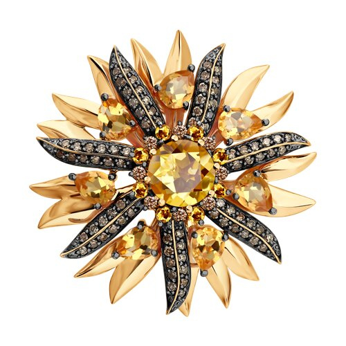 Брошь золотая пробы 585 с цитрином SOKOLOV 74-00018