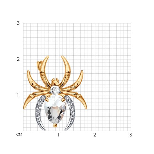 Брошь золотая пробы 585 с горным хрусталем SOKOLOV 740415