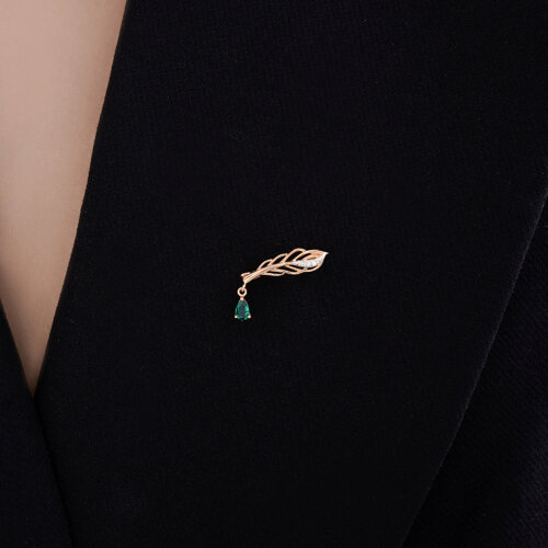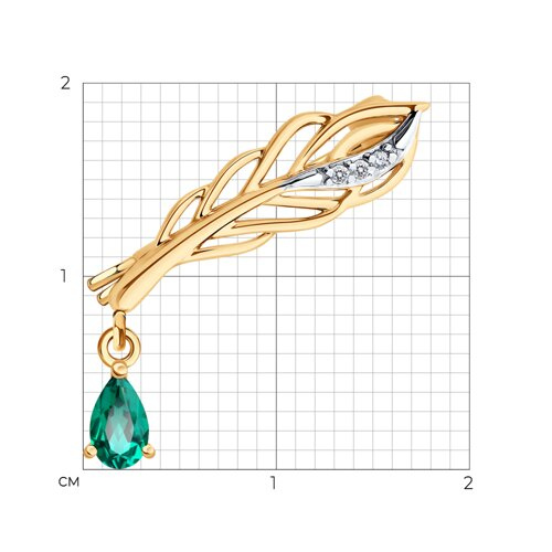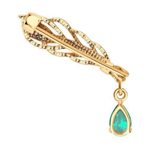Брошь золотая пробы 585 с изумрудом гидротермальным SOKOLOV 74-00013