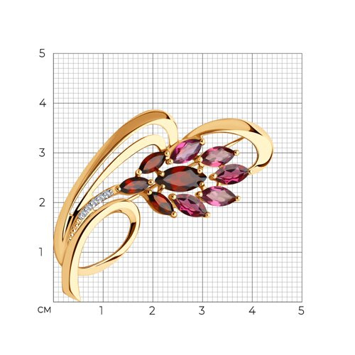 Брошь золотая пробы 585 с миксом камней SOKOLOV 740117
