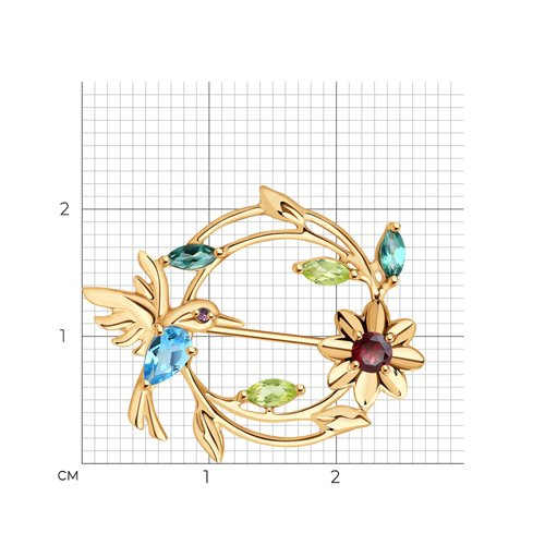 Брошь золотая пробы 585 с миксом камней SOKOLOV 740390
