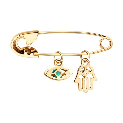 Брошь золотая пробы 585 с миксом камней SOKOLOV 740410