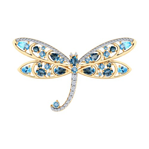 Брошь золотая пробы 585 с миксом камней SOKOLOV 740420