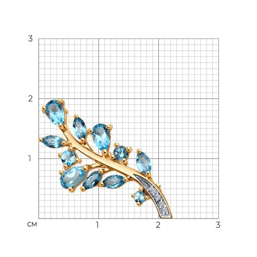 Брошь золотая пробы 585 с топазом SOKOLOV 740403