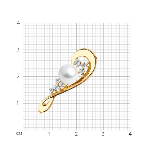 Брошь золотая пробы 585 с жемчугом SOKOLOV 794036