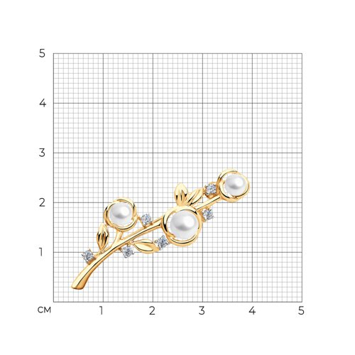 Брошь золотая пробы 585 с жемчугом SOKOLOV 794038