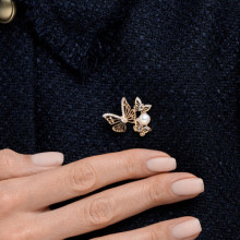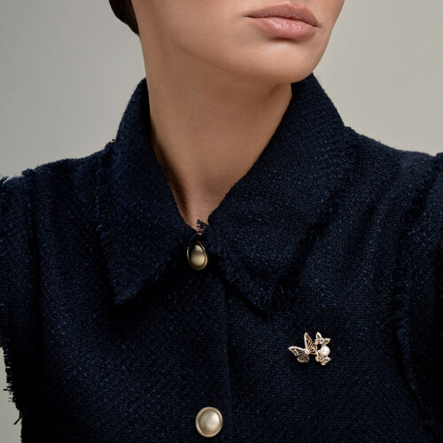 Брошь золотая пробы 585 с жемчугом SOKOLOV 794058