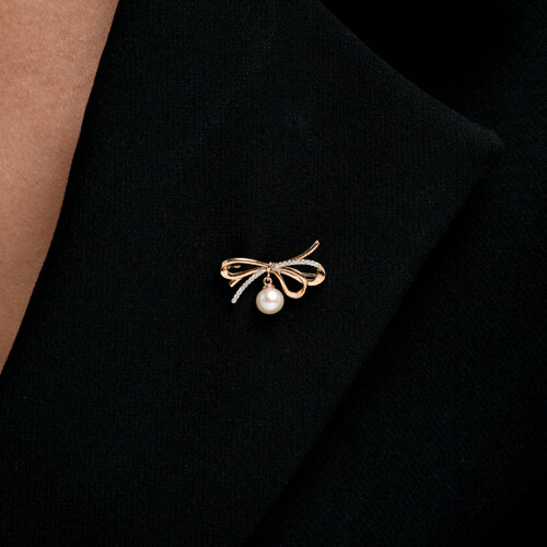 Брошь золотая пробы 585 с жемчугом SOKOLOV 794060
