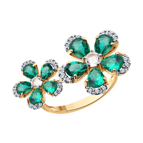 Кольцо золотое пробы 585 с изумрудом гидротермальным SOKOLOV 717360