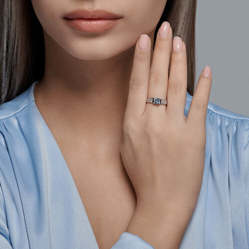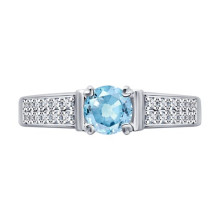 Кольцо из белого золота с бриллиантами и аквамарином SOKOLOV 6014328-3