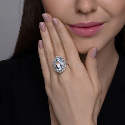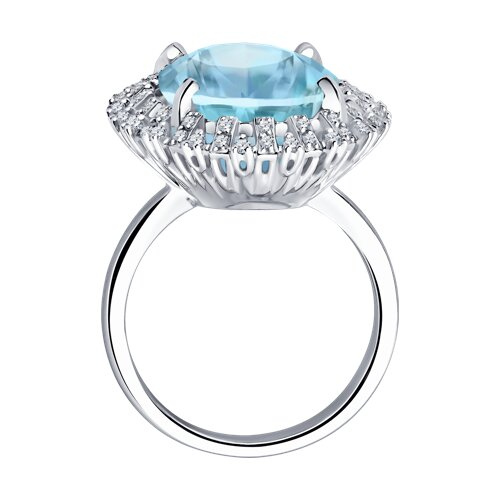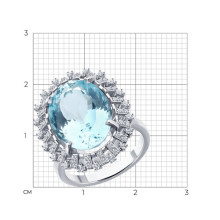 Кольцо из белого золота с бриллиантами и аквамарином SOKOLOV 6014374-3