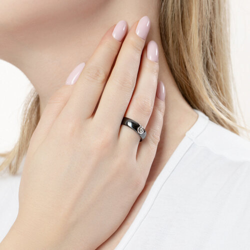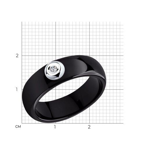 Кольцо из белого золота с бриллиантом и чёрной керамической вставкой SOKOLOV 6015032
