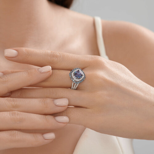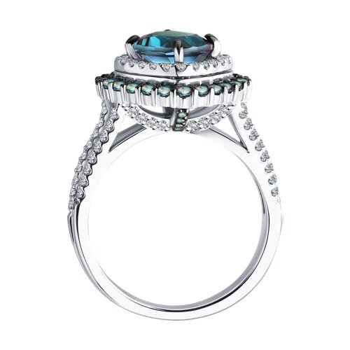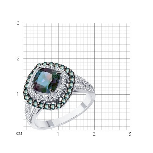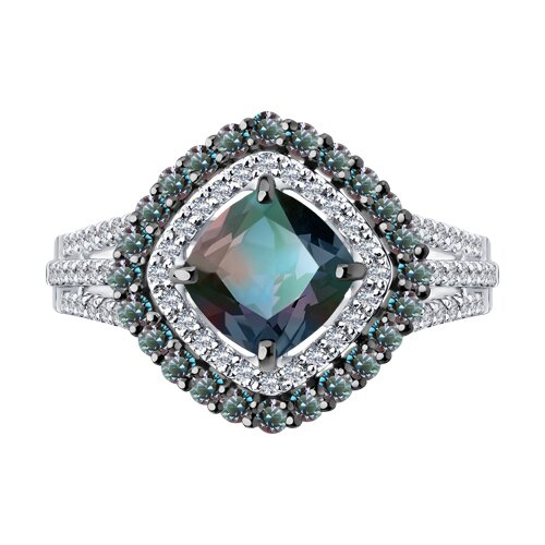 Кольцо из белого золота с бриллиантами и гидротермальными александритами SOKOLOV 6014397-3