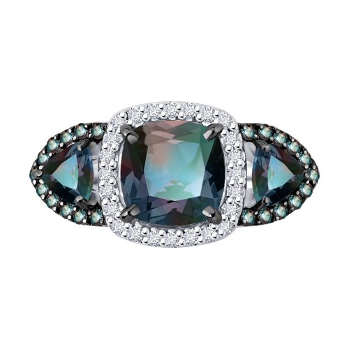 Кольцо из белого золота с бриллиантами и гидротермальными александритами SOKOLOV 6014406-3