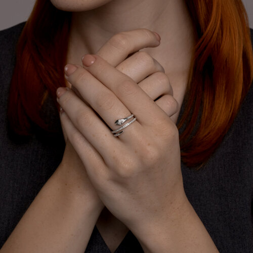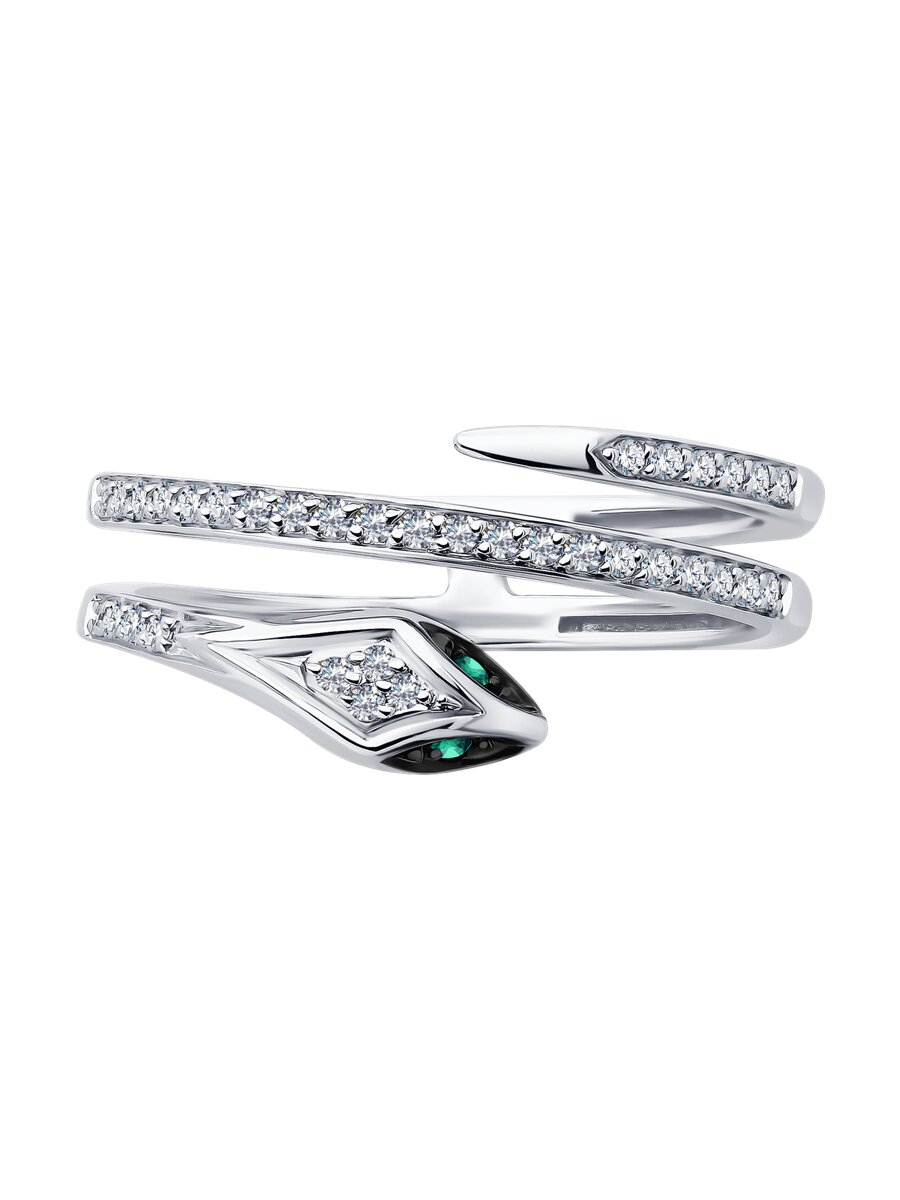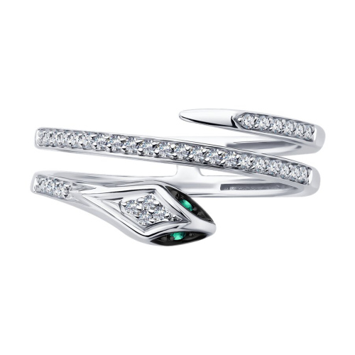 Кольцо из белого золота с бриллиантами и изумрудами SOKOLOV 3010687-3