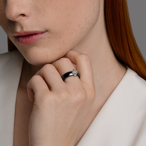 Кольцо из белого золота с бриллиантами и керамическими вставками SOKOLOV 6015124-3