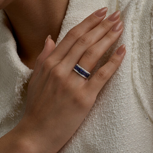 Кольцо из белого золота с бриллиантами и сапфирами Diamant 52-210-01379-1