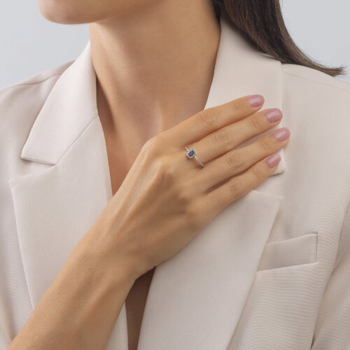Кольцо из белого золота с бриллиантами и сапфирами SOKOLOV 2011217-3
