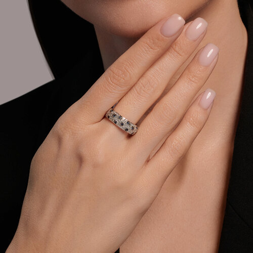 Кольцо из белого золота с бриллиантами и сапфирами SOKOLOV 2011276-3