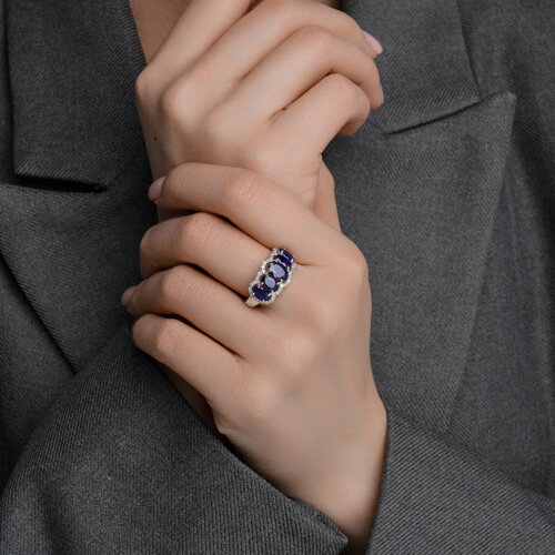 Кольцо из белого золота с бриллиантами и сапфирами SOKOLOV 2011338-3