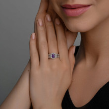 Кольцо из белого золота с бриллиантами и сапфиром SOKOLOV 2011334-3
