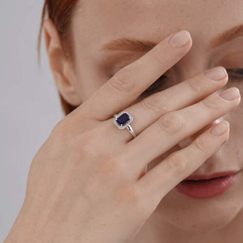 Кольцо из белого золота с бриллиантами и сапфиром SOKOLOV 2011349-3