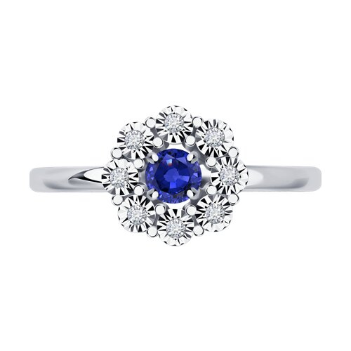 Кольцо из белого золота с бриллиантами и сапфиром Diamant 52-210-01776-1