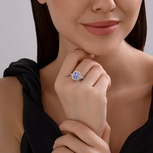 Кольцо из белого золота с бриллиантами и танзанитами SOKOLOV 6014177