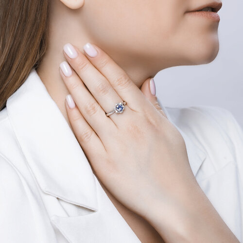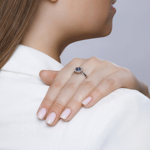 Кольцо из белого золота с бриллиантами и танзанитом SOKOLOV 6014073