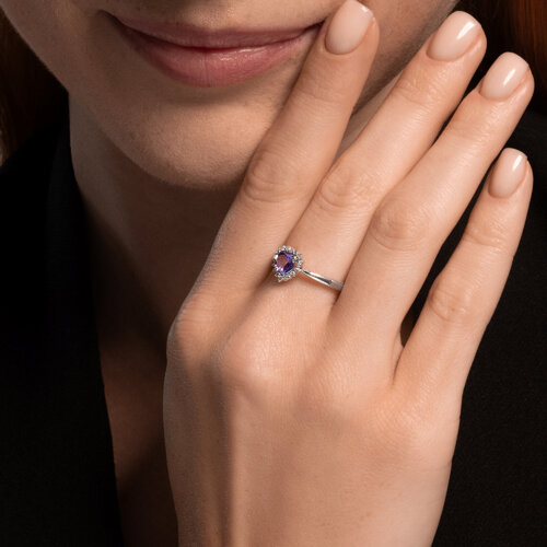 Кольцо из белого золота с бриллиантами и танзанитом SOKOLOV 6014351-3