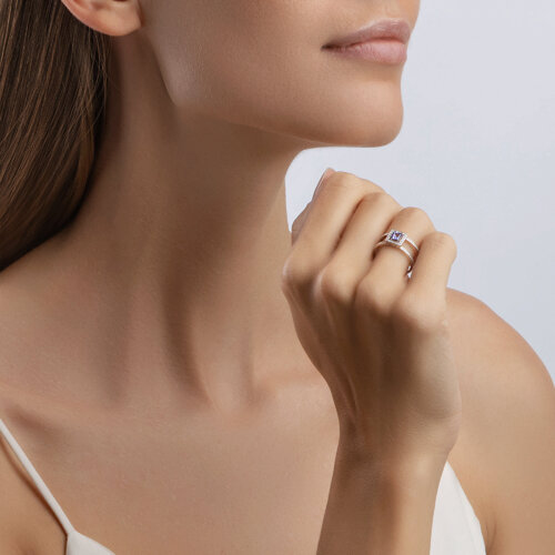 Кольцо из белого золота с бриллиантами и танзанитом SOKOLOV 6014154