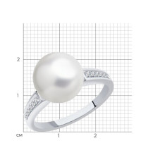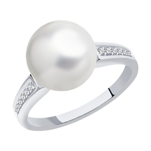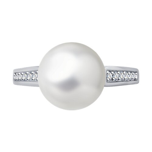 Кольцо из белого золота с бриллиантами и жемчугом SOKOLOV 8010069-3