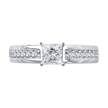 Кольцо из белого золота с бриллиантом выращенным и рубином Diamant 52-210-02590-1
