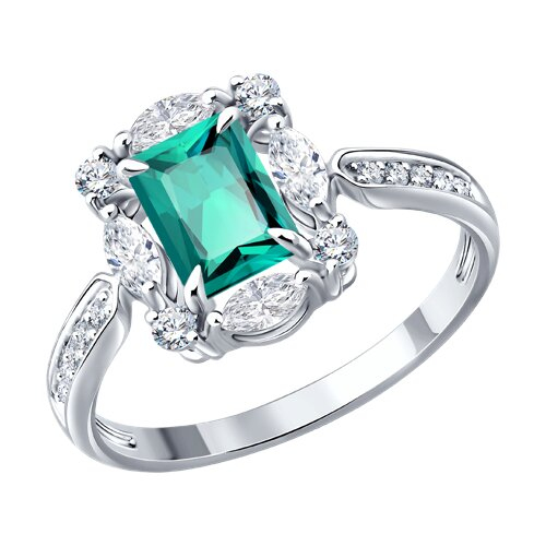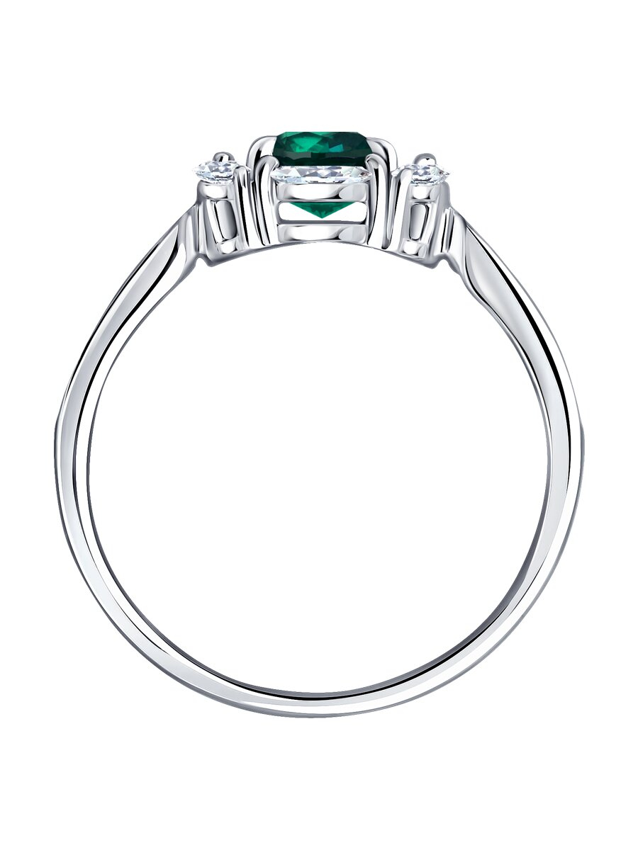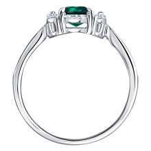 Кольцо из белого золота с изумрудом и бриллиантами выращенными SOKOLOV 3010805-3-5