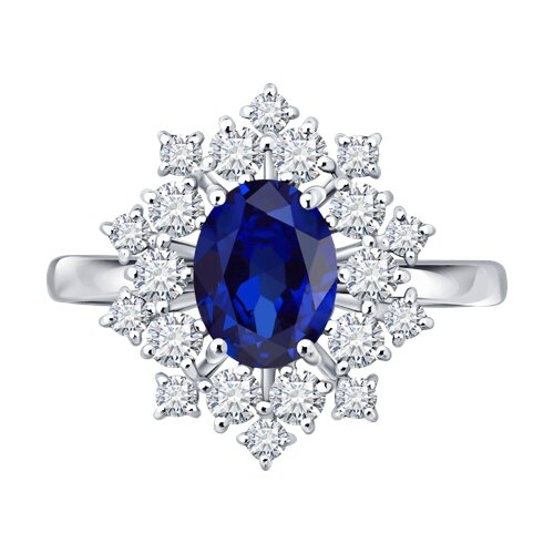 Кольцо из белого золота с сапфиром и бриллиантами выращенными SOKOLOV 2011387-3-5