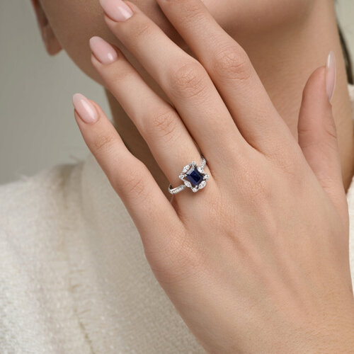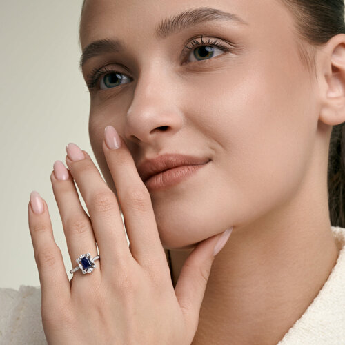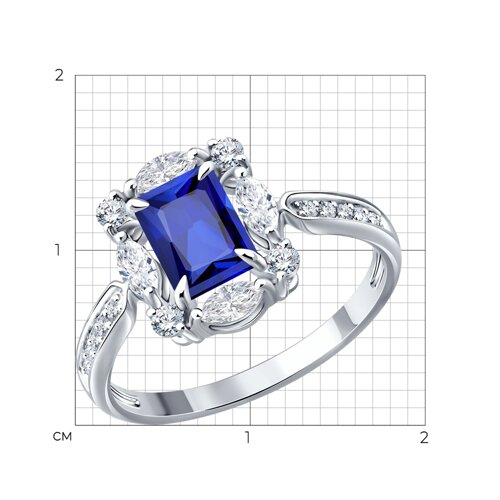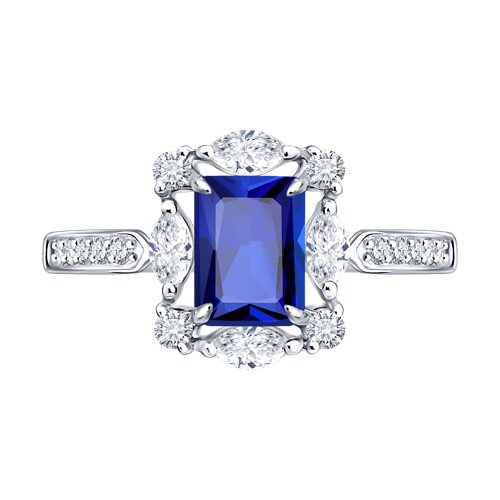 Кольцо из белого золота с сапфиром и бриллиантами выращенными SOKOLOV 2011398-3-5