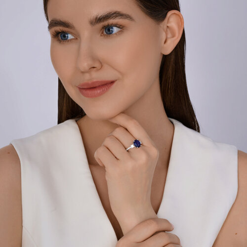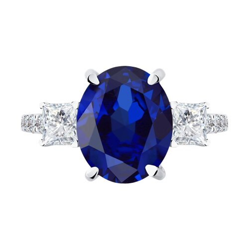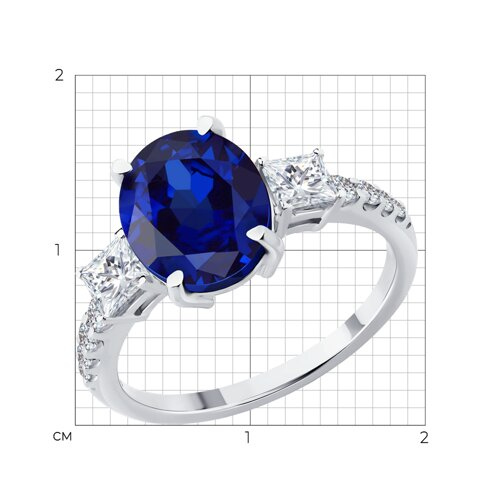 Кольцо из белого золота с сапфиром и бриллиантом выращенным SOKOLOV 2011343-3