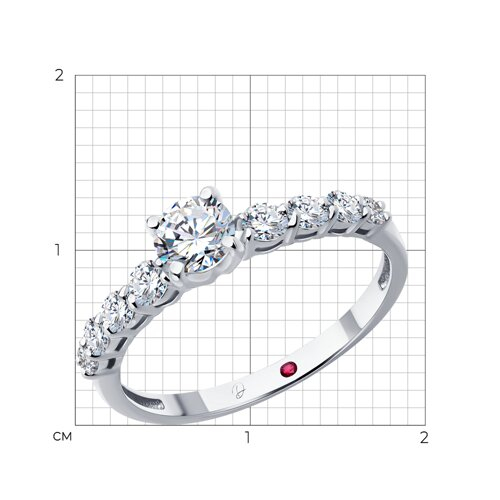 Кольцо из белого золота с выращенным бриллиантом и рубином Diamant 52-210-02766-1